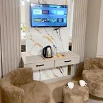 Meublées avec un bureau, 6 chambres comprennent des commodités comme une TV à écran plat avec des chaînes satellite ainsi qu'une cafetière/théière. Un bidet, une douche à l'italienne et une toilette séparée sont inclus dans les chambres sur Dorefis Suites d'Istambul.